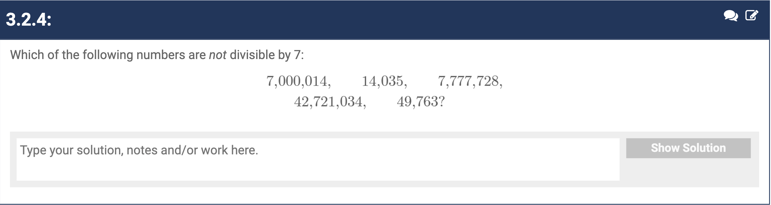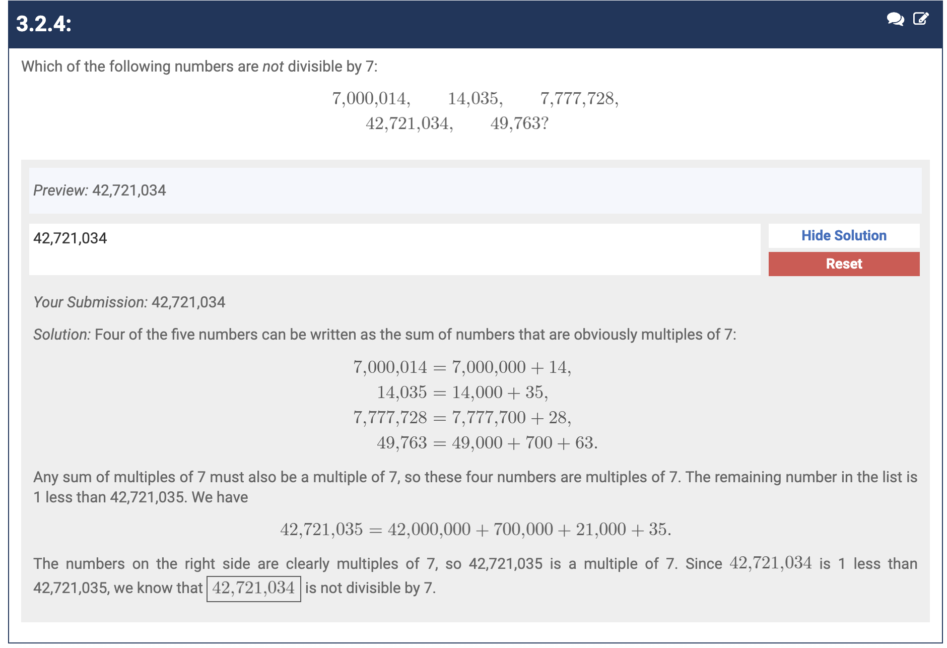The chart you showed doesn’t have a 7 divisibility rule but then problem 3.2.4 deals with 7 divisibility. Why?