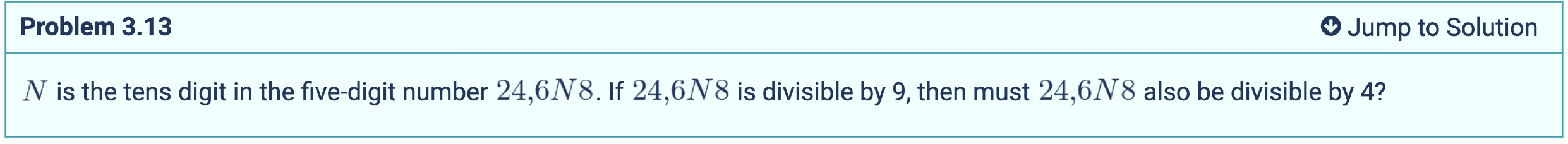 therefore we just need to check if the last three digits are divisible by 8 since a number like 4,454,124 can be broken down into 4,454 (1000) + 124 which is equal to 4454 (8(125))