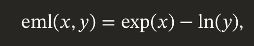 He says you can replace all buttons on a scientific calculator with only 2 buttons and do all the same things. The buttons are the number 1 and the function he discovered, eml: