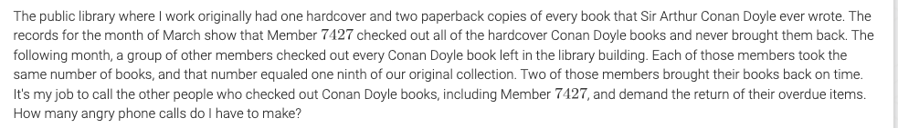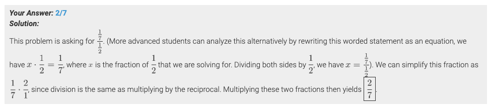 I agree you can’t rip a painting into pieces. This is a habit that stemmed from school that I still kinda do even though I’m not in school and Alcumus doesn’t do partial credit. The point about it not being school: I definitely had questions in school where things that didn’t make sense to be split up, were getting split up. A pizza makes sense. A painting does not. I agree, but out of habit I still assume maybe thats what the question is asking. The other part about partial credit: sometimes I would leave answers that I know to be incorrect because its better than no answer. Again it doesn’t make sense for Alcumus problems I’ve been doing, but yeah. The main reason though was definitely the first reason.