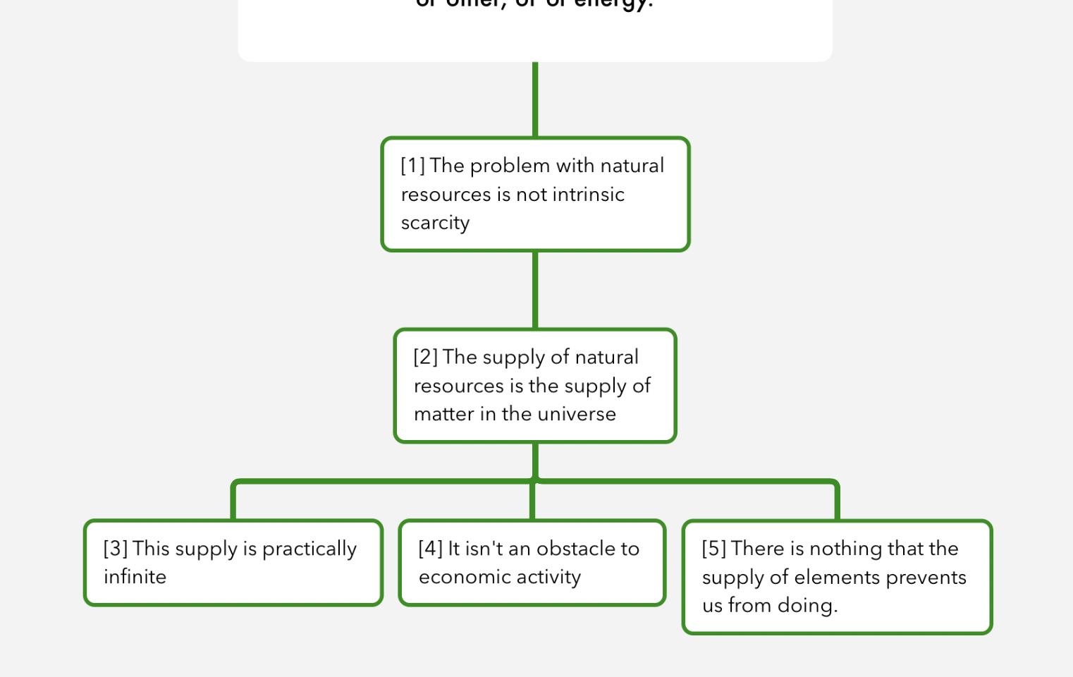 The problem of natural resources is in no sense one of intrinsic scarcity. From a strictly physical-chemical point of view, natural resources are one and the same with the supply of matter and energy that exists in the world and, indeed, in the universe. Technically, this supply may be described as finite, but for all practical purposes it is infinite. It does not constitute the slightest obstacle to economic activity—there is nothing we are prevented from doing because the earth (let alone the universe) is in danger of running out of some chemical element or other, or of energy.