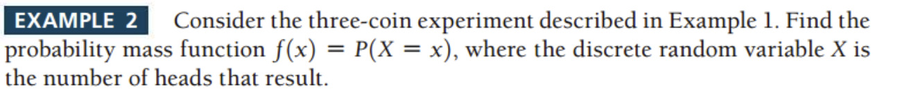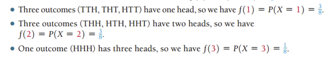 So X is the number is the number of heads that result. X had a range of values from {0, 1, 2, 3}. The list of values X: 0, 1, 1, 2, 1, 2, 2, 3. What do I with this.