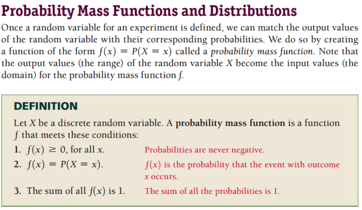 so the probability that an event occurs f(x) is equal to P(X=x). We will be plugging in the the range of the random variable X. So what’s P doing here. Is it representing probability? I’m a little confused.