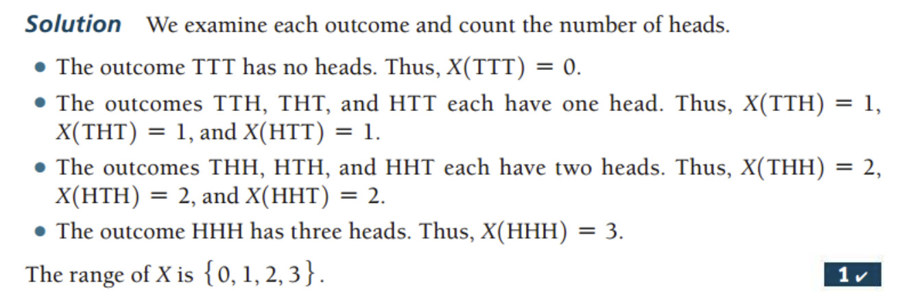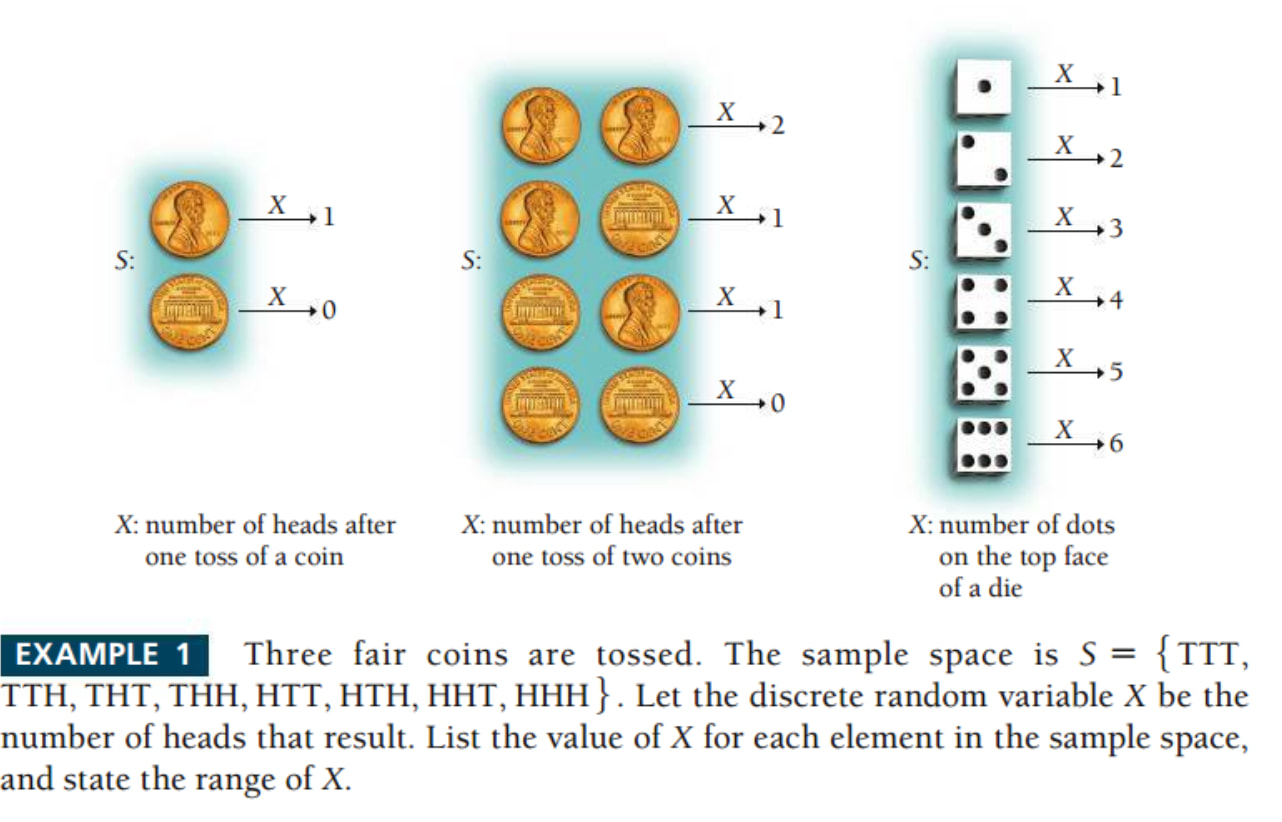 the coin shows a head), and the range of X is {0, 1}. This is illustrated in the following